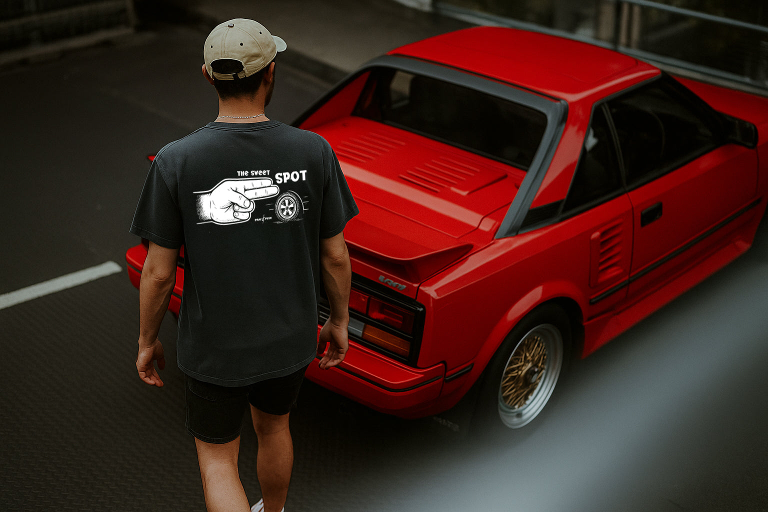 Two fingers, just right. The Sweet Spot tee nods to perfect stance and everything that makes finding the gap worth it. For those who know balance isn’t just about the ride.